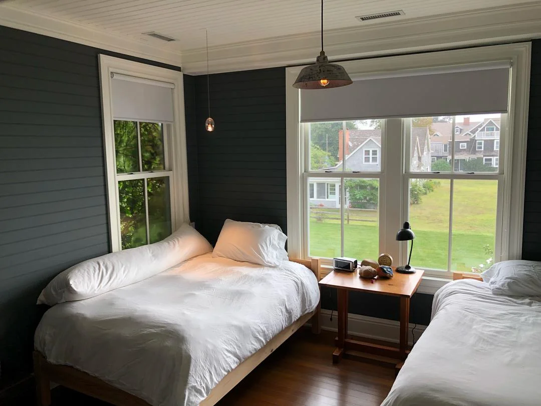 This summer while enjoying dinner and celebrating my wedding anniversary at a local bistro, I couldn’t stop starring at the window treatments. While I probably should have been more focused on our meal, I found myself obsessed with how beautiful the light gray, slightly translucent roller blinds fit perfectly into the space. After months of going back and forth on what to do with our windows, I knew exactly what we were going to do and that I needed to find out who was responsible for these shades.