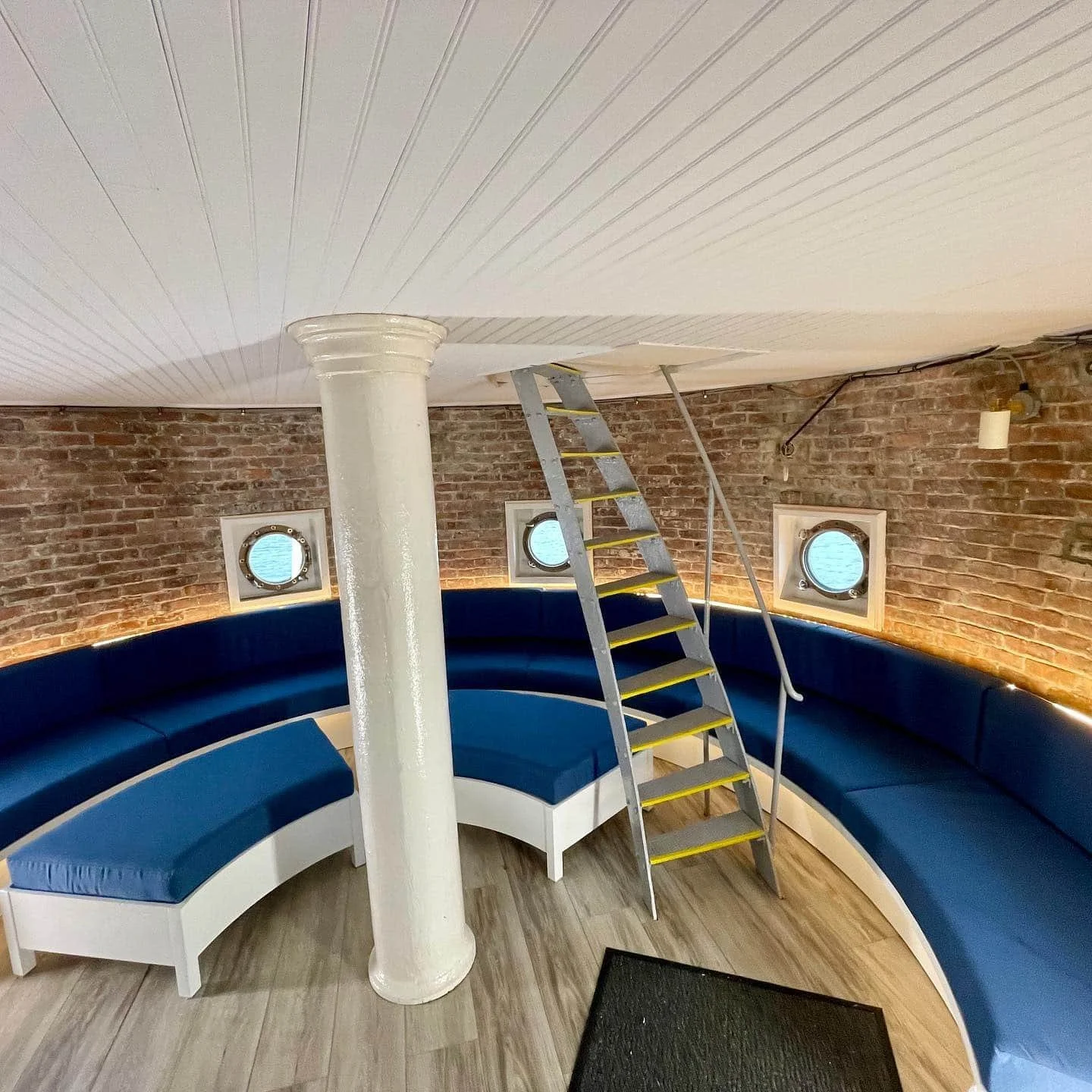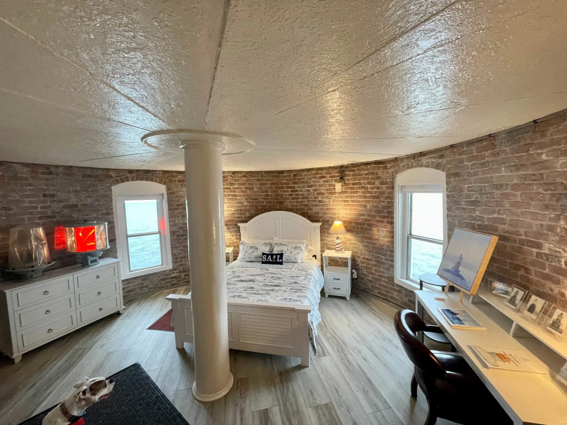 Originally built to warn ships of the submerged reef near Norwalk and Darien, Greens Ledge Light has been lovingly restored over the past decade. Guests who step inside the iron tower will find nods to its past—original Fresnel lens elements, porthole views, and spiral stairs leading to the lantern room—as well as all the comforts of modern living.